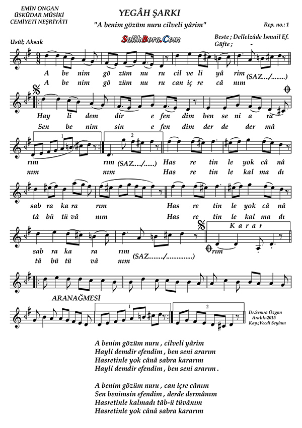 Ayşe TAŞ-A Benim Gözüm Nûru Cilveli Yarim (YEGÂH)R.G.