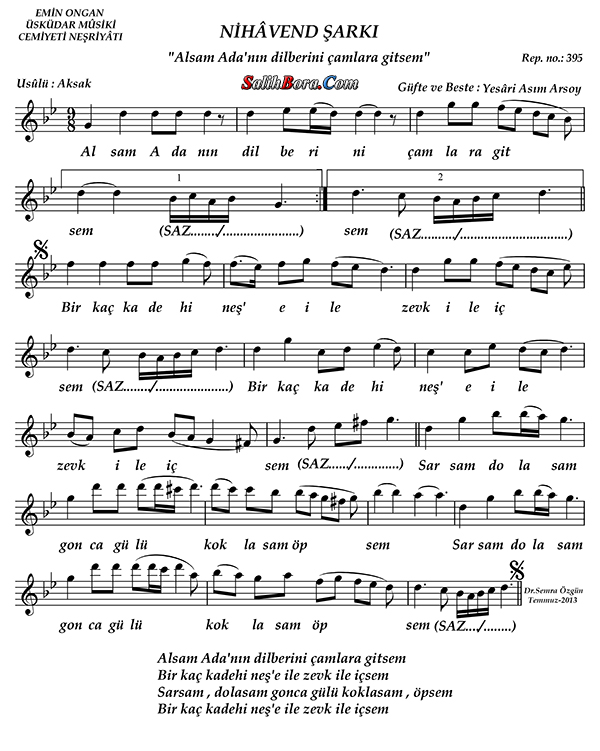 Alsam adanın dilberini çamlara gitsem notası - 1