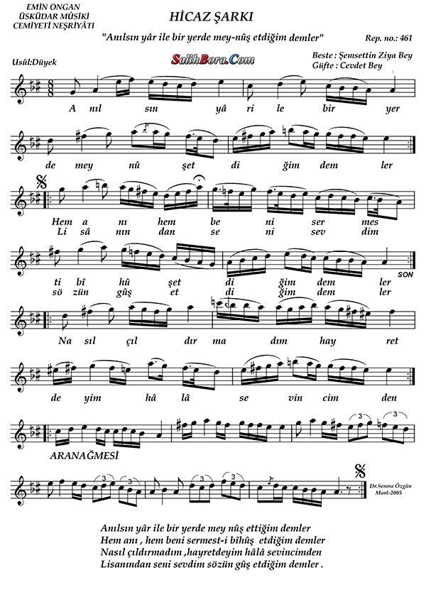 Bestecisi: Şemseddîn Ziyâ Bey