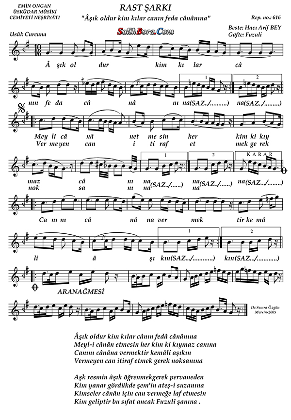Bestecisi: Hacı Ârif Bey