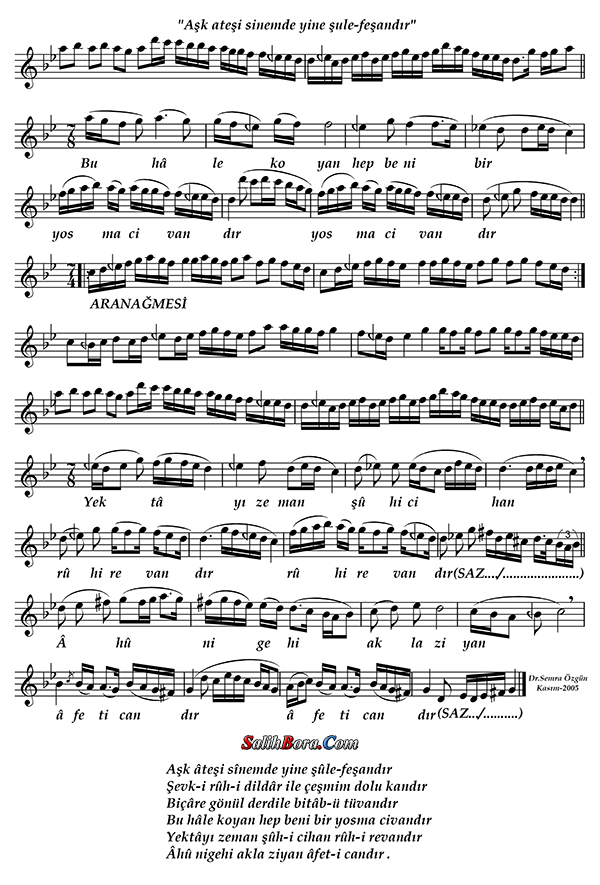 Aşk âteşi sînemde yine şûle-feşândır notası - 3