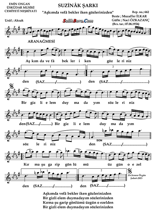 Bilge PAKALINLAR-Aşkımda Vefâ Bekler İken Gözlerinizden (SÛZNÂK)R.G.