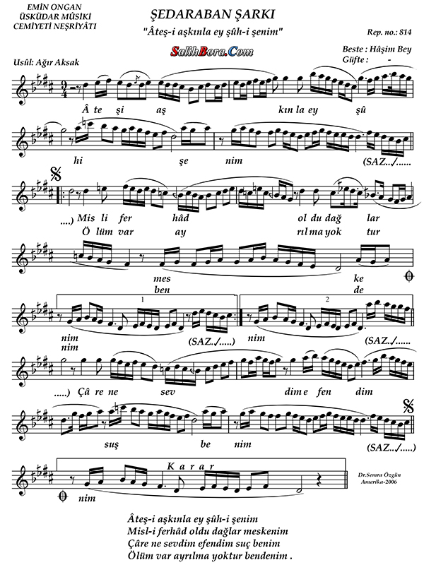 ŞEDD-İ ARABAN-Âteş-i Aşkınla Ey Şûh-i Şenim (Bekir Sıtkı SEZGİN)R.G.