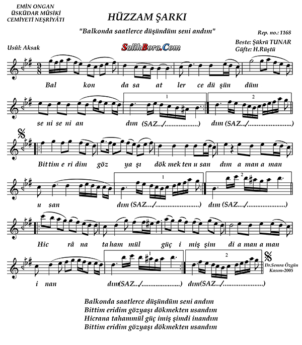 Bilge PAKALINLAR-Balkonda Saatlerce Düşündüm (HÜZZAM)R.G.
