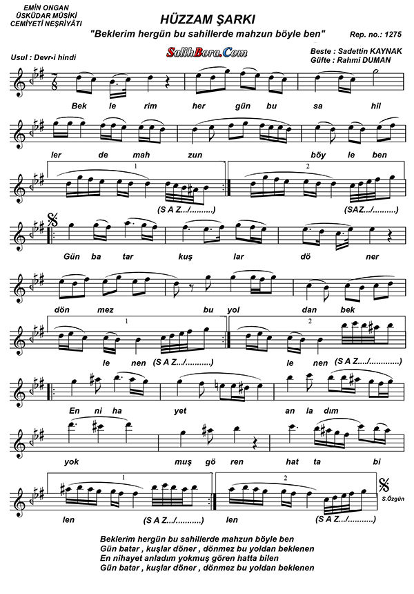 Bestecisi: İsmâil Hakkı Nebiloğlu