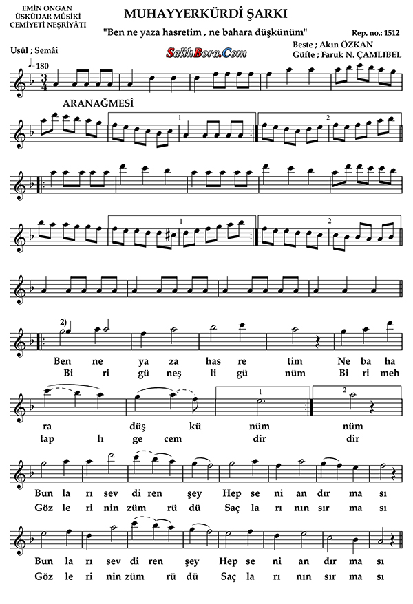 Makâmı: Muhayyer kürdî makâmı