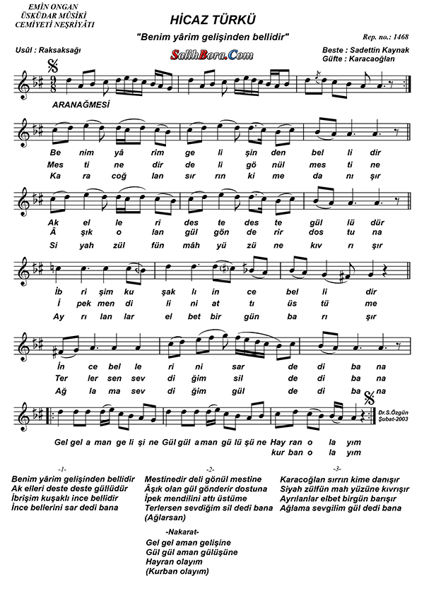 Nazlı KANAAT-Benim Yarim Gelişinden Bellidir (HİCAZ)R.G.