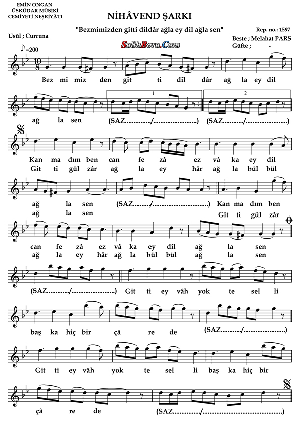 Bestesi Melâhat Pars'a âit olan, nihâvend makâmı, curcuna usûlündeki şarkının; ayrıntılı bilgileri, sözleri, notaları ve video yorumları.