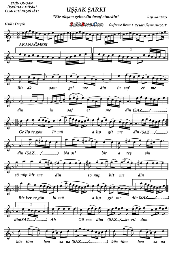 Bestecisi ve güfte şâiri: Yesârî Âsım Arsoy