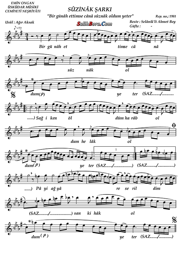 Ali Osman AKKUŞ-Bir Günah Ettimse Cânâ Suzinak Oldum Yeter (Peşrevli)(SÛZNÂK)R.G.