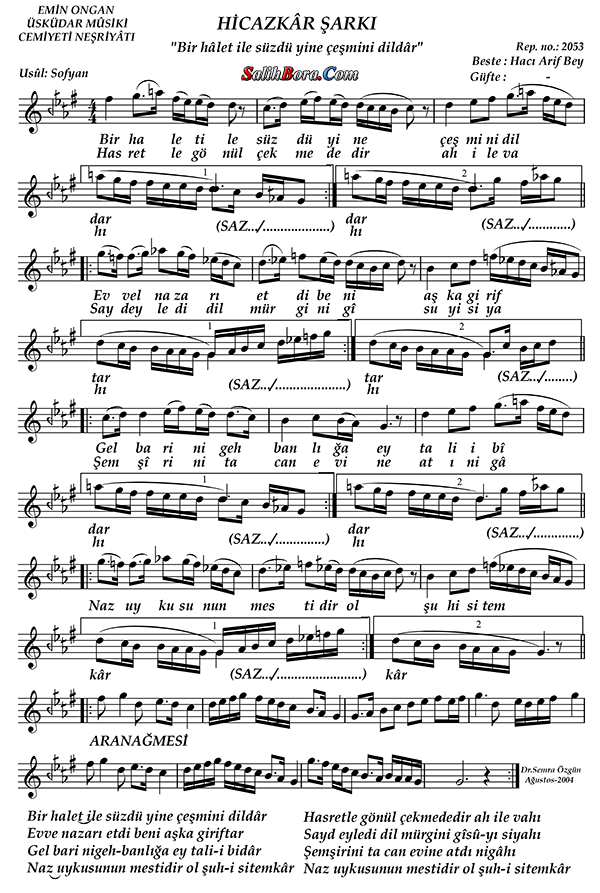 Bestecisi: Hacı Ârif Bey
