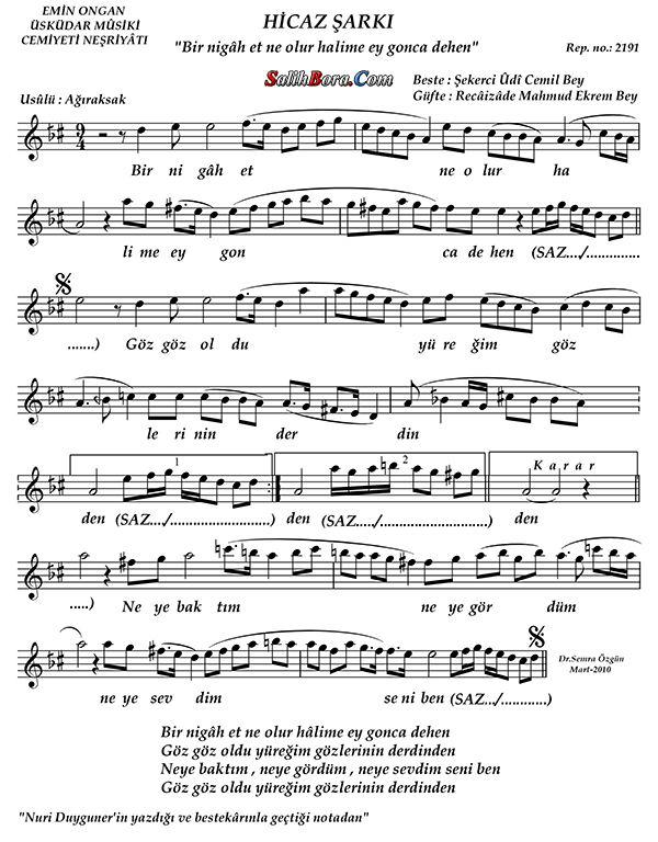 KÂNİ KARACA Bir Nigâh Et Ne Olur Halime Ey Gonce Dehen