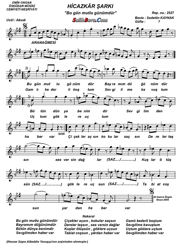 Bestecisi: Sâdettin Kaynak