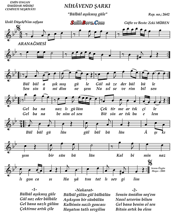 Bestesi ve güftesi Zeki Müren'e âit olan, nihâvend makâmı, düyek ve nîm sofyan usûllerindeki şarkının; bütün bilgileri, sözleri, notaları ve video yorumları.