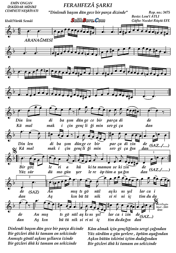 Başım, dün gece, on sekizindeki ceylân gözlü sevgilinin dizinde bir parça olsun dinlendi.