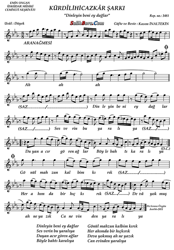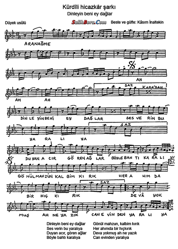 Bestecisi ve güfte şâiri: Kâsım İnaltekin