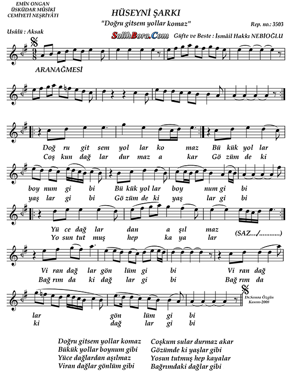 Bestecisi ve güfte şâiri: İsmâil Hakkı Nebiloğlu