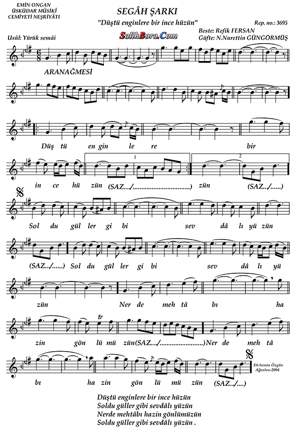 Bestesi Refik Fersan'a, güftesi Necmi Nûrettin Güngörmüş'e âit olan, segâh makâmı, semâî usûlündeki şarkının; ayrıntılı bilgileri, sözleri, notaları ve video yorumları.
