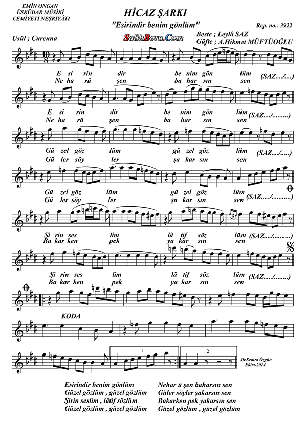 V.Kaptan YURDAKUL-Esîrindir Benim Gönlüm Güzel Gözlüm Güzel Gözlüm (Tan.Tak.İpek DERELİ)(HİCAZ) R.G.