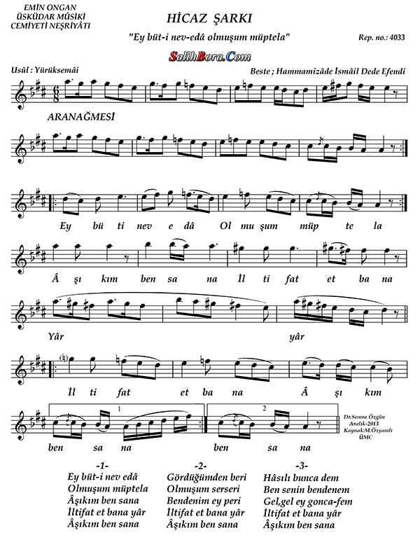 Bestecisi: Hammâmîzâde İsmail Dede Efendi