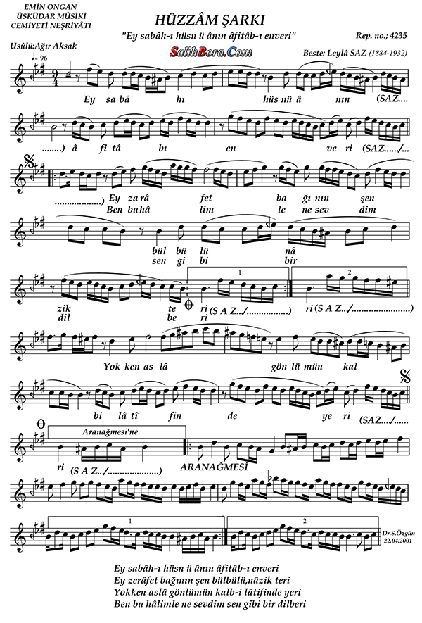 Sabite Tur Gülerman.Ey sabâh-ı hüsn ü ânın âfitâb-ı enver.i..
