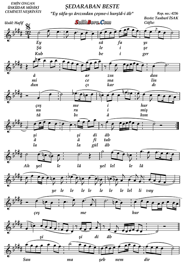 Şedaraban Beste - Ey safâ-yı ârızından çeşme-i hurşîd âb - Tanbûri İzak Efendi