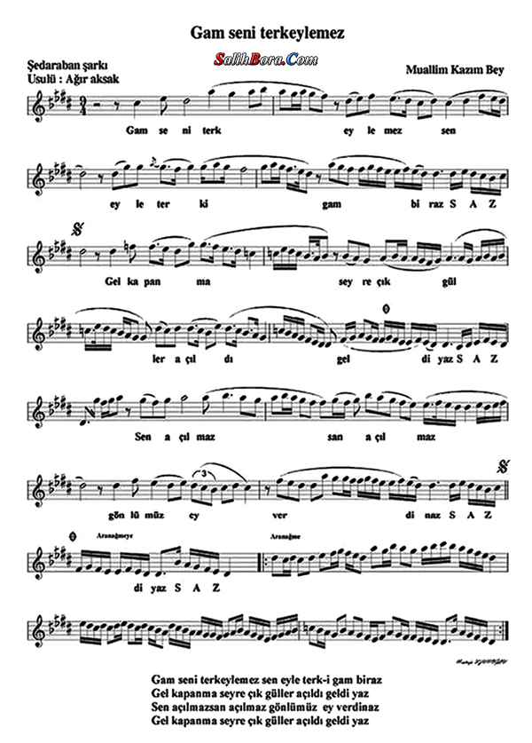 Gam seni terk eylemez sen eyle terk-i gam biraz notası - 2