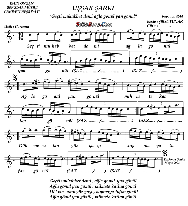 Bestesi Şükrü Tunar'a âit olan, uşşak makâmı, curcuna usûlündeki şarkının; bütün bilgileri, sözleri, notaları ve video yorumları.