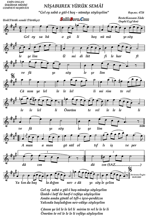 NİŞÂBUREK YÜRÜK SEMÂÎ: "GEL EY SABÂ O GÜL-İ HOŞNÜMÂYI SÖYLEŞELİM"
