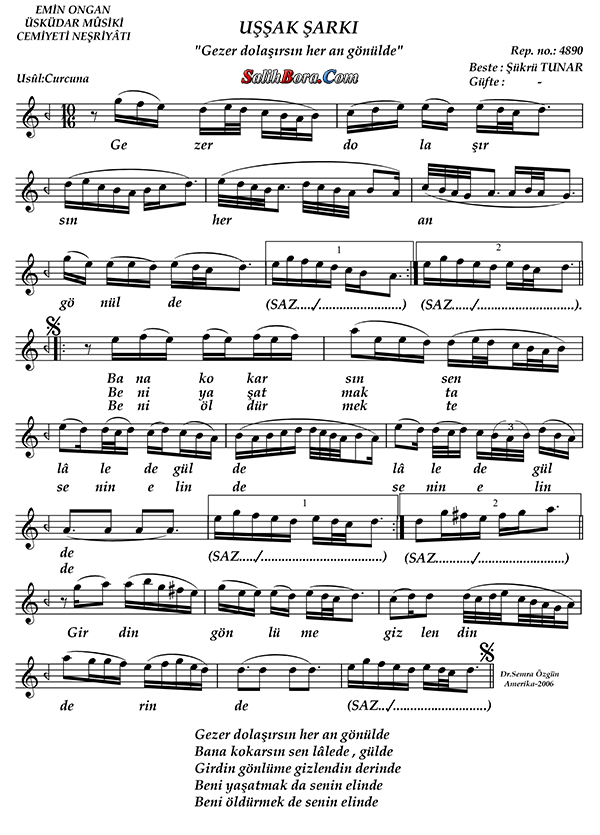 Bestesi Şükrü Tunar'a âit olan, uşşak makâmı, curcuna usûlündeki şarkının; bütün bilgileri, sözleri, notaları ve video yorumları.