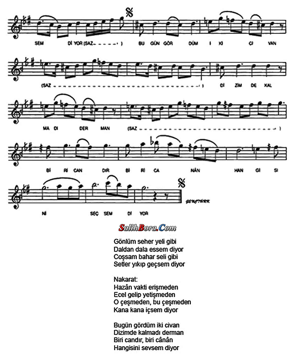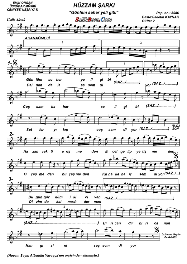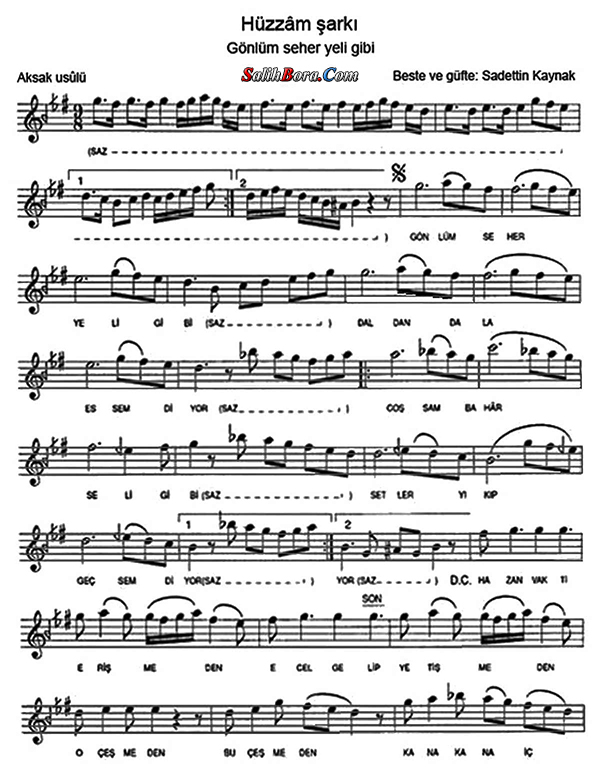 Bestesi ve güftesi Sâdettin Kaynak'a âit olan, hüzzâm makâmı, aksak usûlündeki şarkının; ayrıntılı bilgileri, sözleri, notaları ve video yorumları.