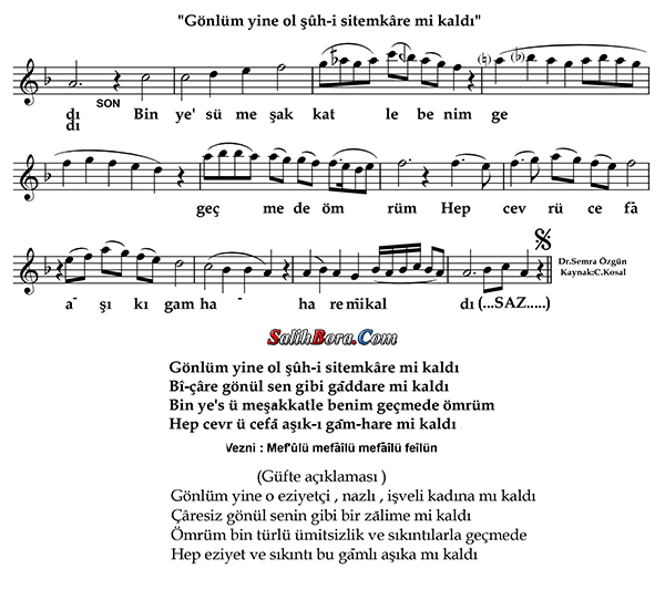 Bekir Sıdkı Sezgin-Gönlüm yine ol şûh-i sitemkâre mi kaldı