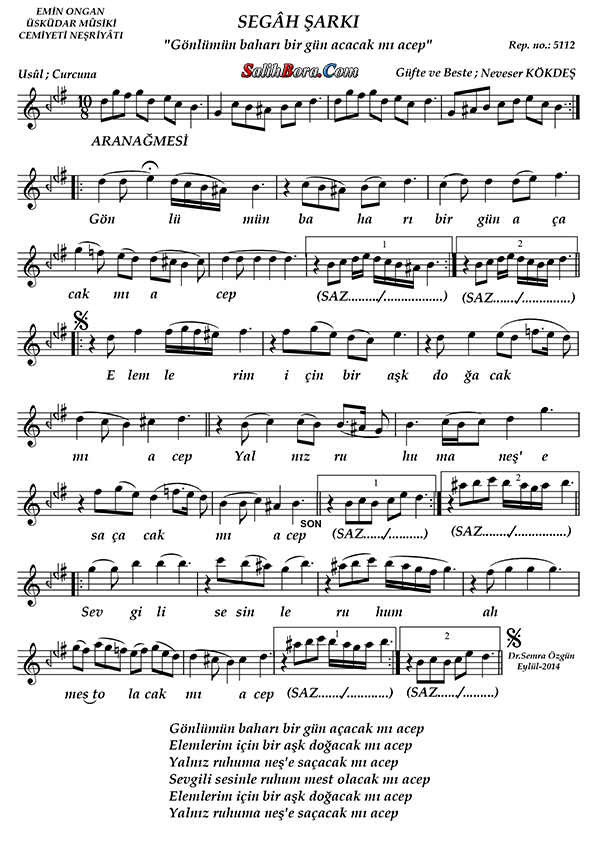 Bestecisi ve güfte şâiri: Neveser Kökdeş