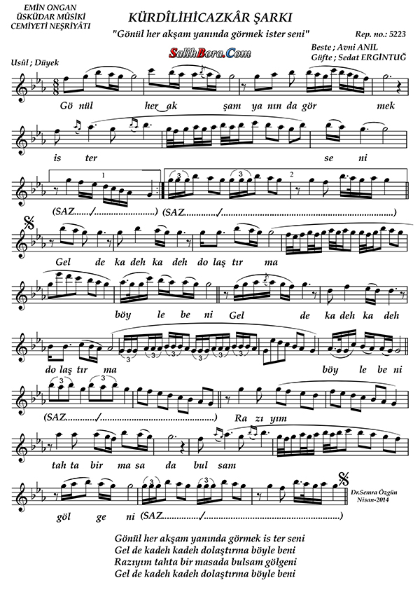 Gönül her akşam yanında görmek ister seni notası - 3