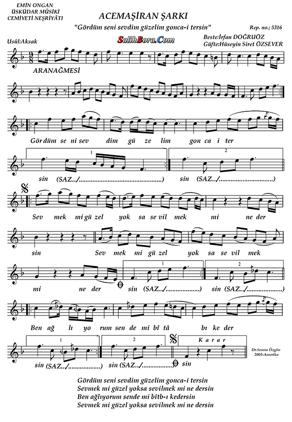 Makâmı: Acem aşîrân makâmı