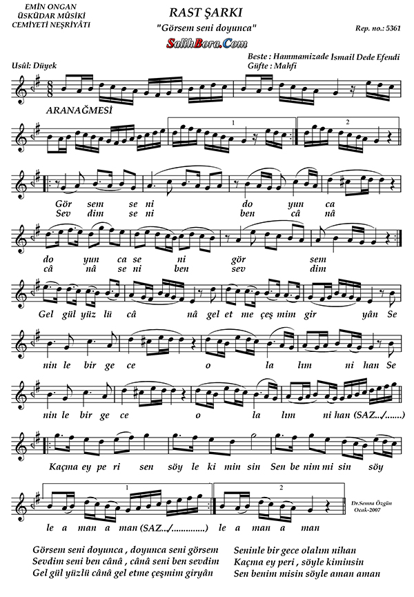 Ali Rıza KÖPRÜLÜLEROĞLU-Görsem Seni Doyunca (RAST)R.G.