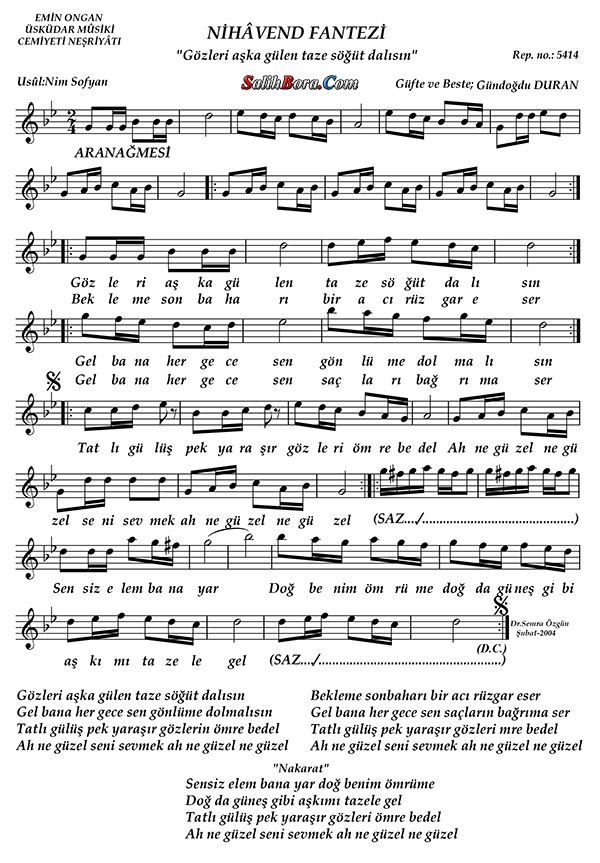 Bestecisi ve güfte şâiri: Gündoğdu Duran