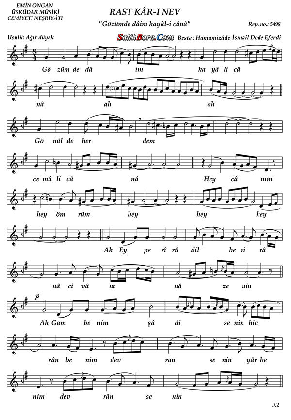 Bestecisi: Hammâmîzâde İsmail Dede Efendi