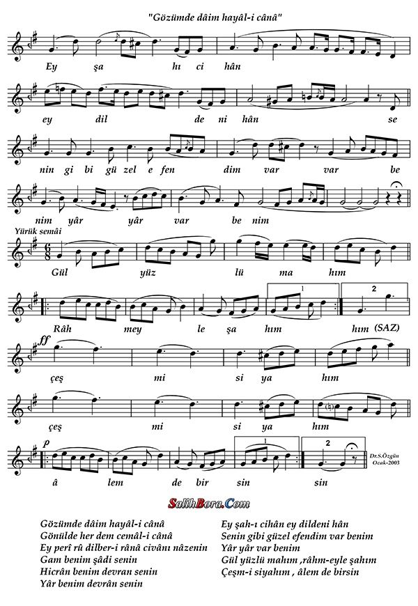 Usûlü: Ağır düyek ve yürük semaî usûlleri