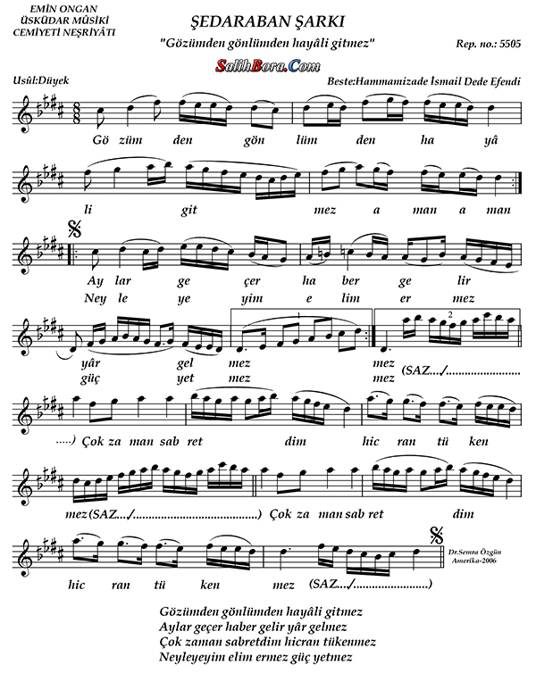 Bestecisi: Hammâmîzâde İsmail Dede Efendi