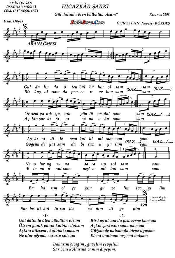 Bestecisi ve güfte şâiri: Neveser Kökdeş