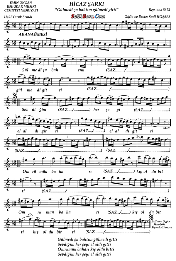 Bestecisi ve güfte şâiri: Sâdi Hoşses