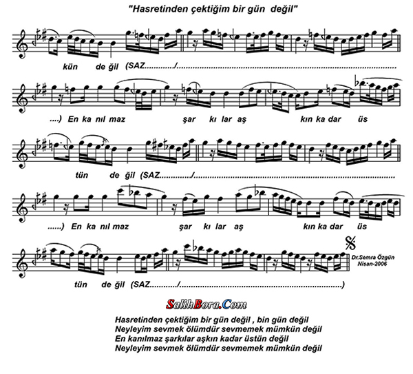 Hasretinden çektiğim bir gün değil bin gün değil notası - 2
