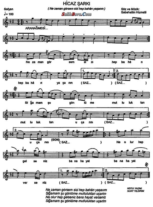 Bestecisi ve güfte şâiri: Sabahattin Hizmetli