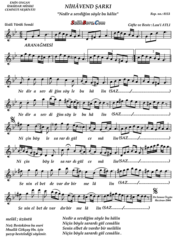 Bestecisi ve güfte şâiri: Lemî Atlı