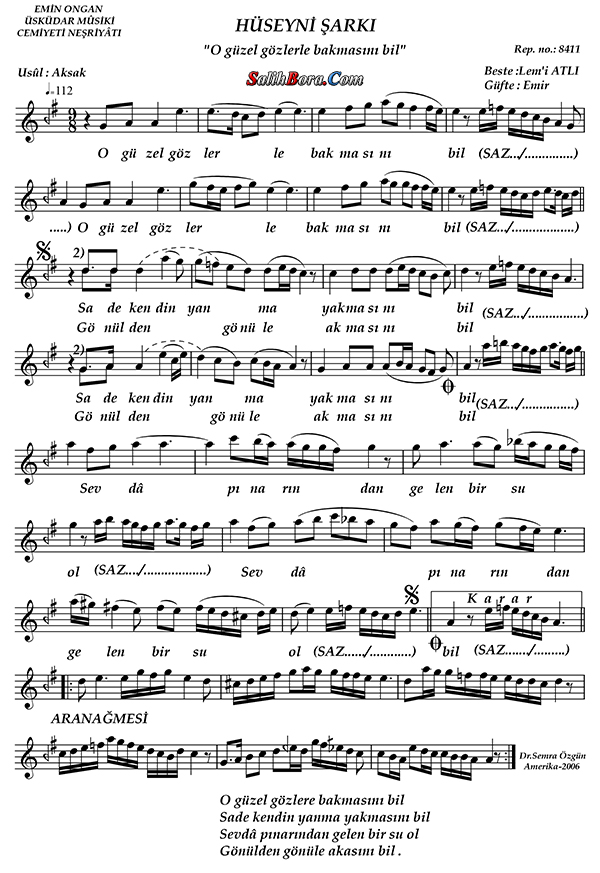 Bestesi Lemî Atlı'ya, güftesi Emîr'e âit olan, hüseynî makâmı, aksak usûlündeki şarkının; bütün bilgileri, sözleri, notaları ve video yorumları.