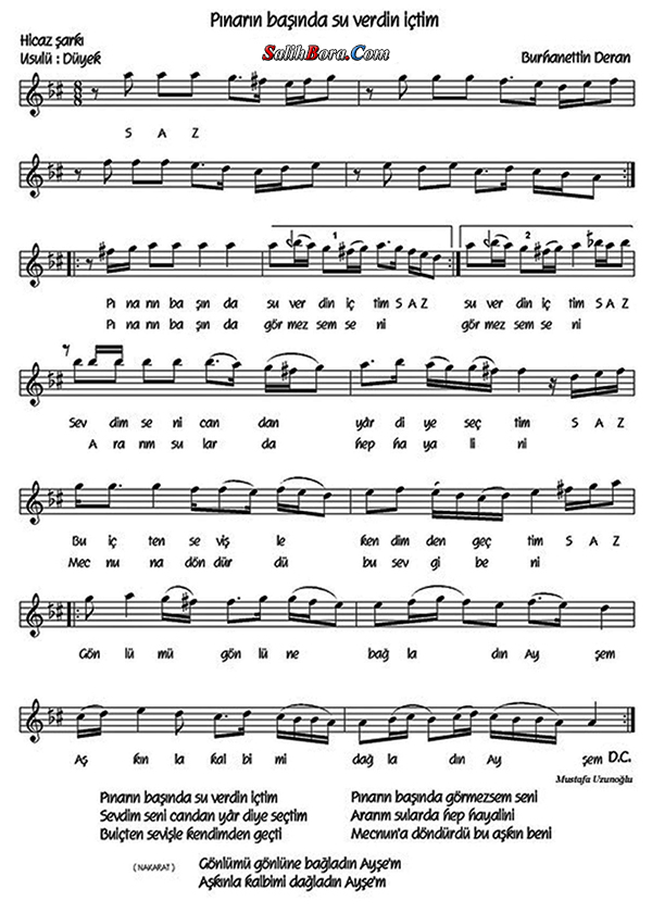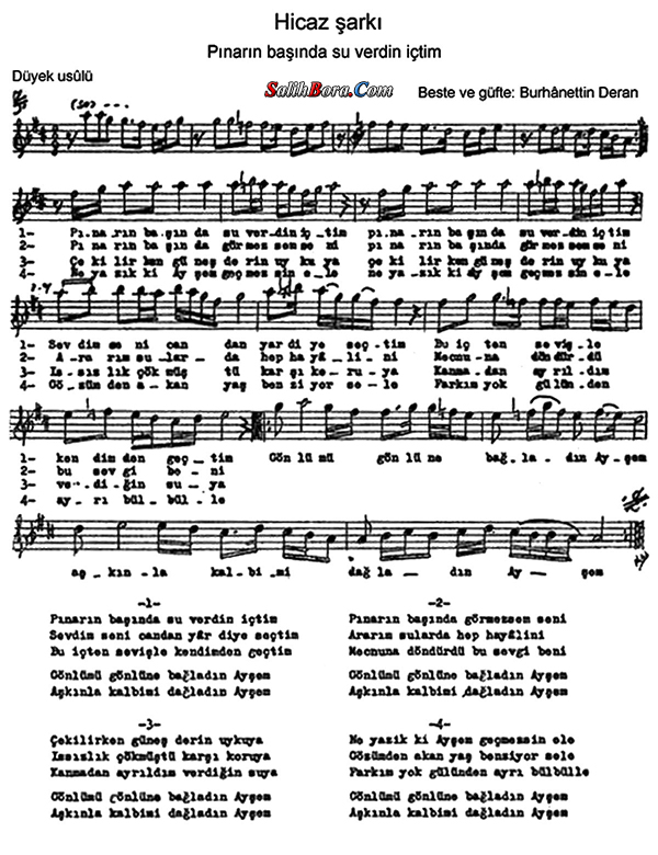 Bestesi ve güftesi Burhânettin Deran'a âit olan, hicâz makâmı, düyek usûlündeki şarkının; ayrıntılı bilgileri, sözleri, notaları ve video yorumları.