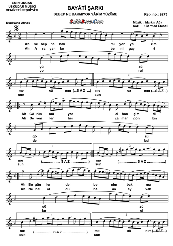 Özer Özel - Bayâti Şarkı - Sebep ne bakmıyor yârim yüzüme