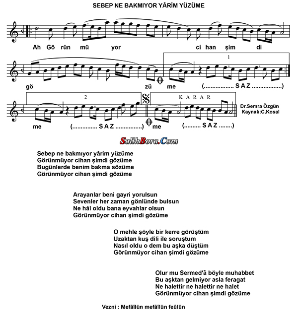 Sebep ne bakmıyor yârim yüzüme?