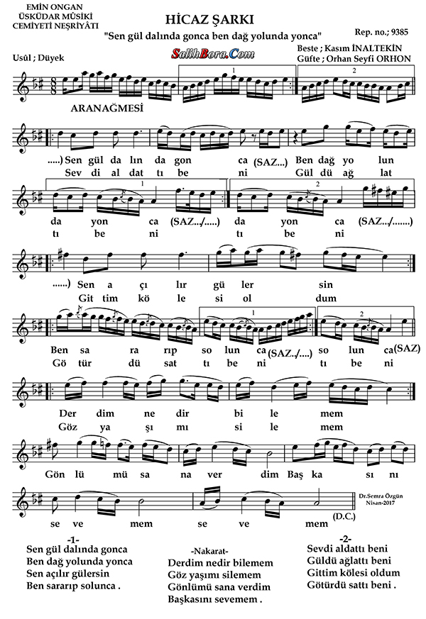Kemal CANER-Sen Gül Dalında Gonca Ben Dağ Yolunda Yonca (HİCAZ)R.G.
